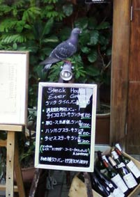 あら、メニュー看板の上に素敵な鳩の飾りが‥